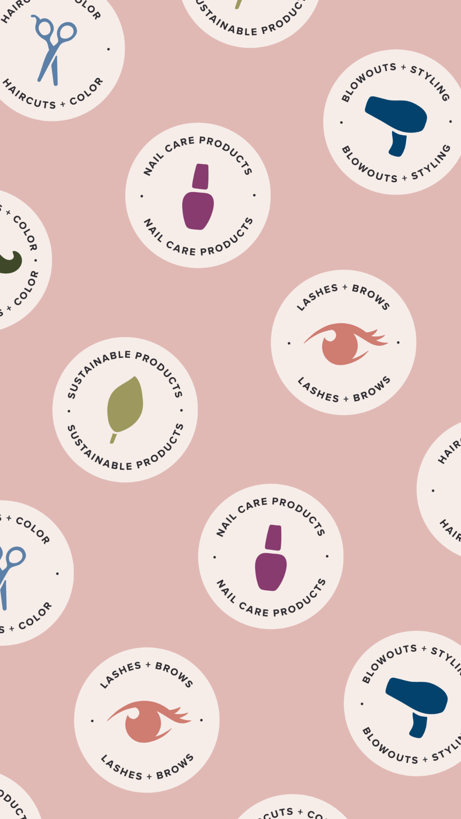 A Brkich Design Group project. The original logo for The BeautyMark featured a pair of red lips. This new concept retains the familiarity of the previous mark, but has been updated to improve legibility and style. We expanded on the concept of a beauty mark by creating custom interchangeable icons, or 'marks', to represent the other services that the salon offers. The fun, hand-drawn pattern is lively. and brings a quirkiness to the visual brand.